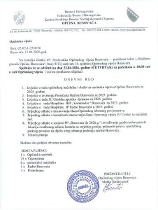 Sjednica će se održati dana 23.04.2026. godine (četvrtak) sa početkom u 10,00 sati, u sali Općinskog vijeća Busovača.